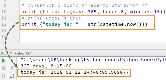 Remember this function is not for printing out the time or date, but something to CALCULATE about the future or past. Let's see an Python timedelta example to understand it better.
