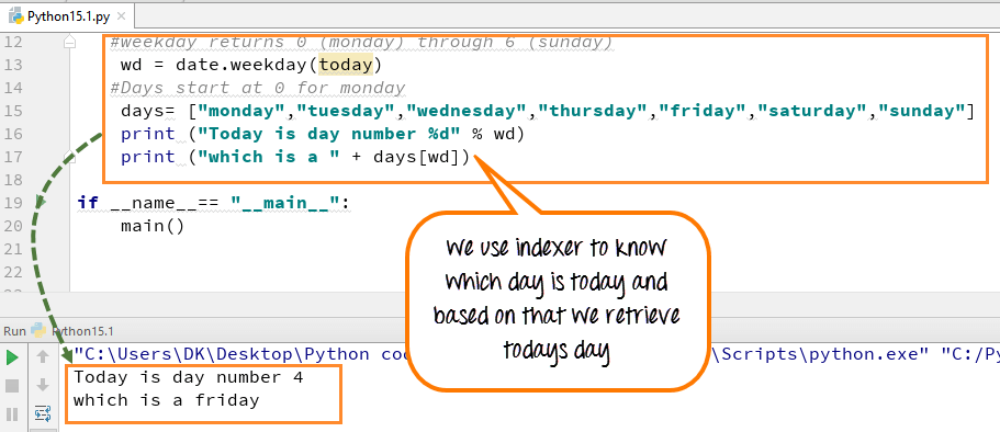 Step 3) We will apply our weekday indexer to our weekday's arrayList to know which day is today