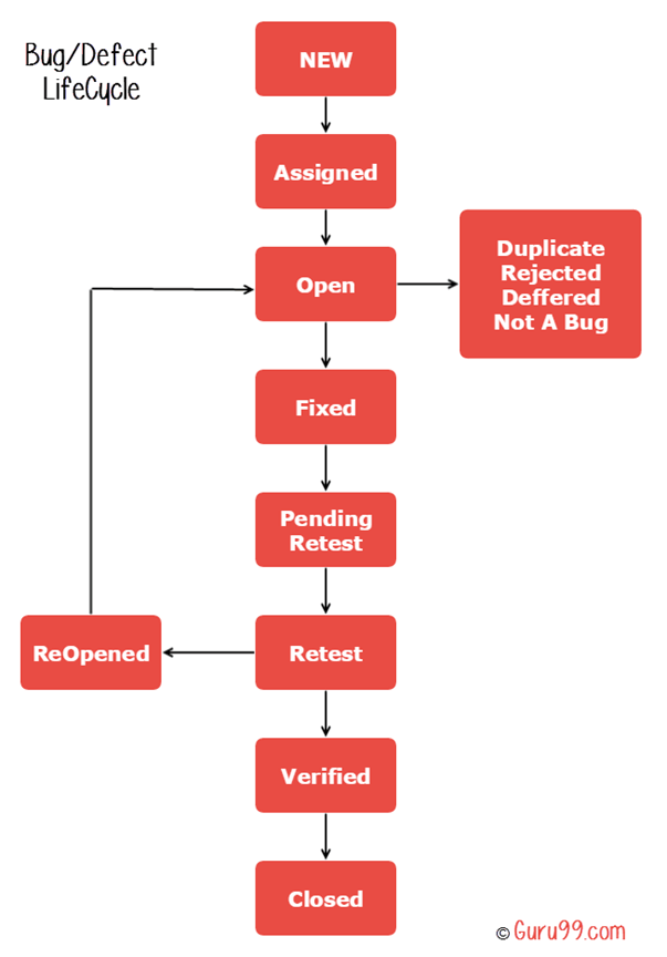 The number of states that a defect goes through varies from project to project. Below lifecycle diagram, covers all possible states