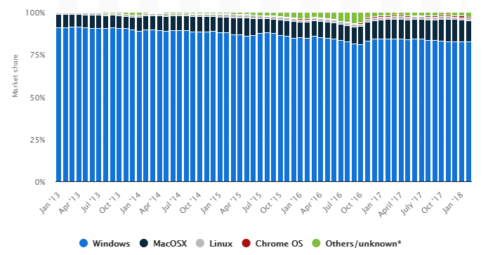 The Unix OS works on CLI (Command Line Interface), but recently, there have been developments for GUI on Unix systems. Unix is an OS which is popular in companies, universities big enterprises, etc.