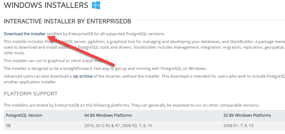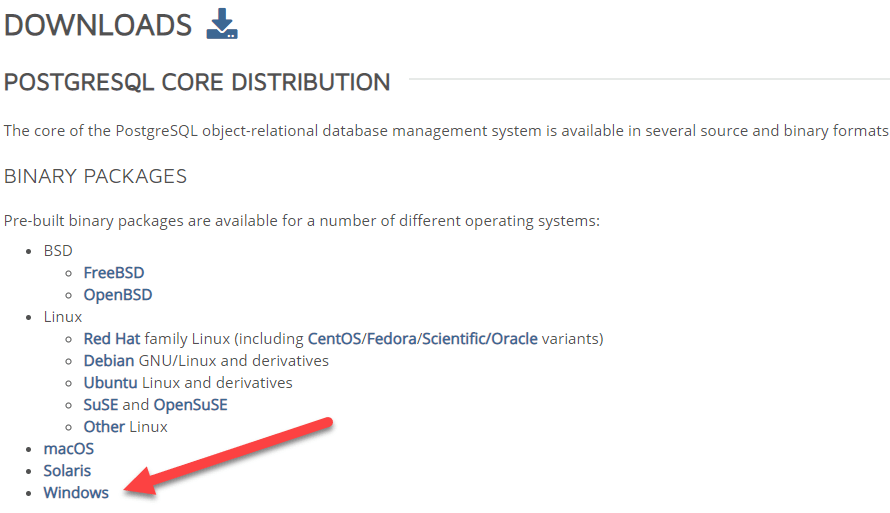 Step 1) Go to https://www.postgresql.org/download and select Windows