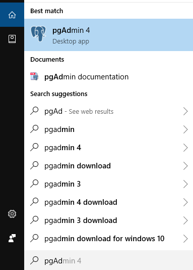 Step 13) To launch PostgreSQL go to Start Menu and search pgAdmin 4