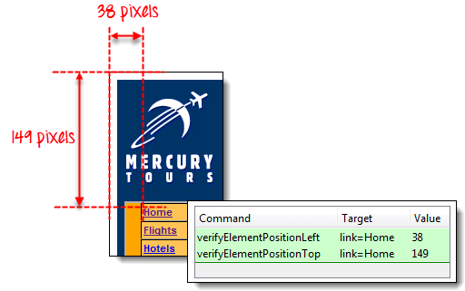 Selenium IDE indicates the position of an element by measuring (in pixels) how far it is from the left or top edge of the browser window.