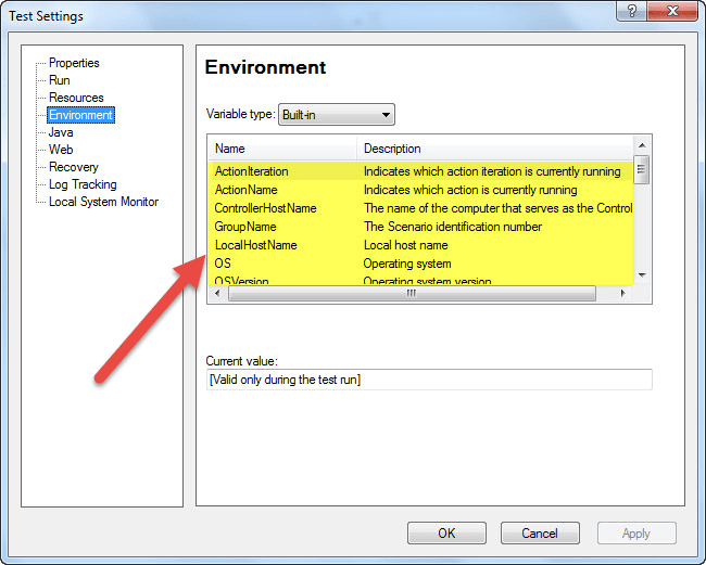 Micro Focus UFT environment variables can be accessed by all actions, function library, and recovery scenarios.