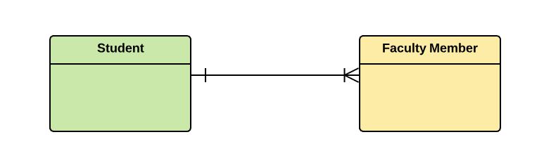 For example, Students as a group are associated with multiple faculty members, and faculty members can be associated with multiple students.