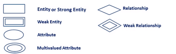 Following are the main components and its symbols in ER Diagrams:
