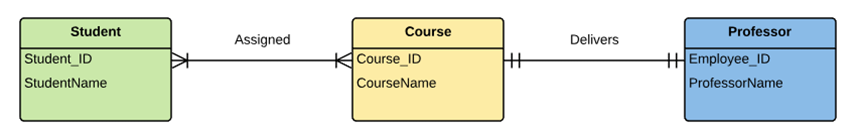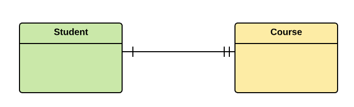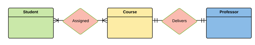 Example: One student can register for numerous courses. However, all those courses have a single line back to that one student.