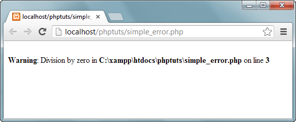 Assuming you saved the file simple_error.php in phptuts folder, open the URL http://localhost/phptuts/simple_error.php