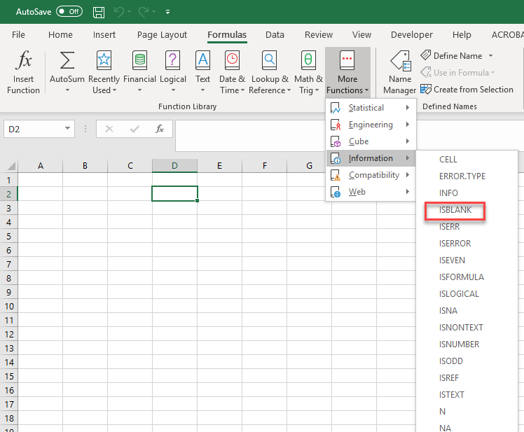 ISBLANK function in excel is grouped under information function. Information functions help to take a decision based on their results. You may come across a situation where you want to find the blank cells in an excel cell.