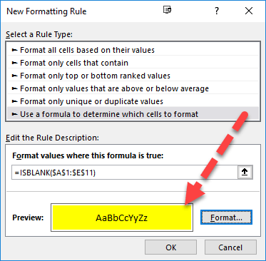 Step 5) Format will appear in the preview, click 'OK' button to apply.