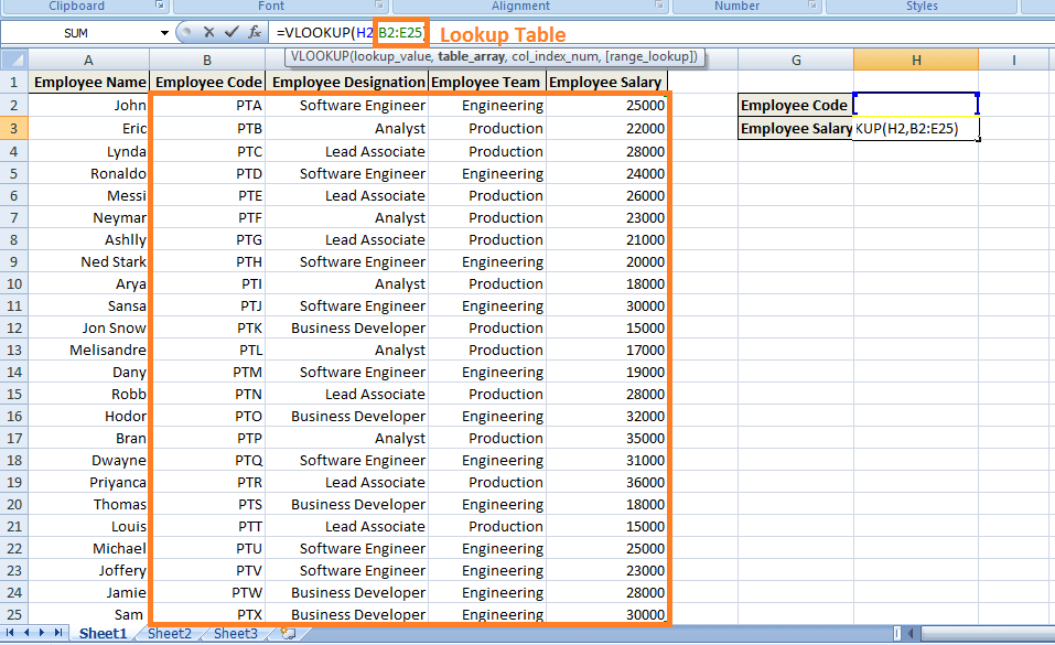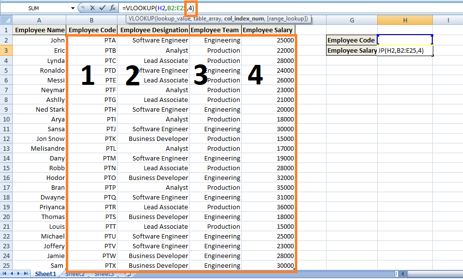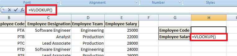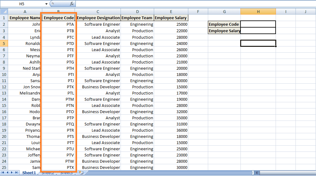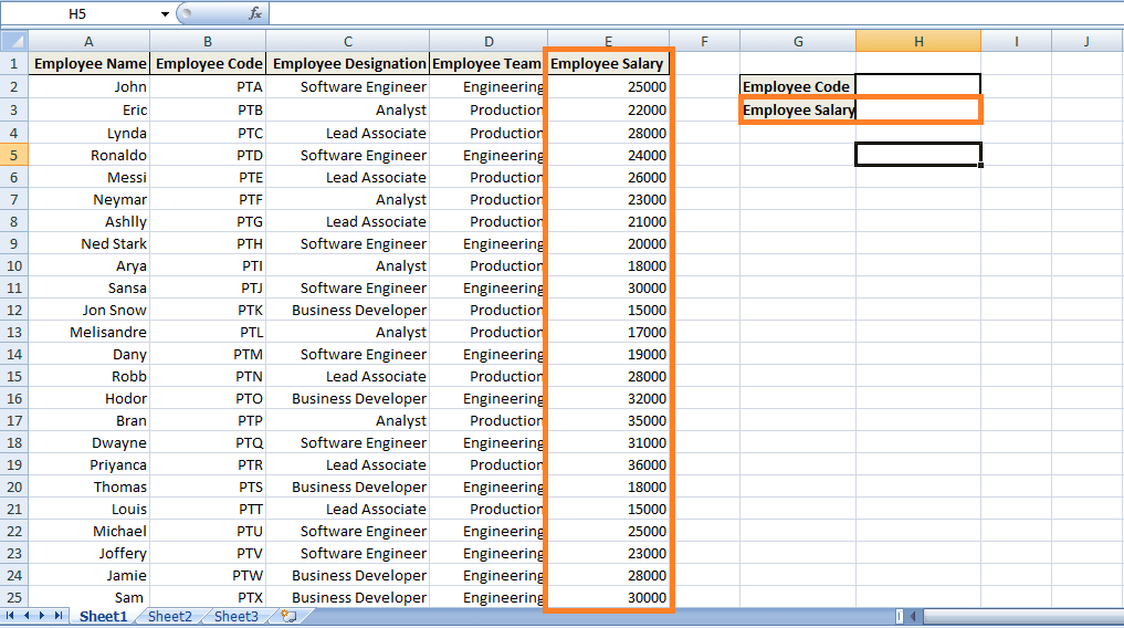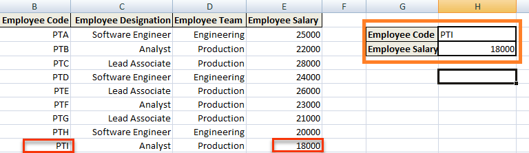 However, as you enter any Employee Code in H2, it will return the corresponding value i.e. Employee's Salary.