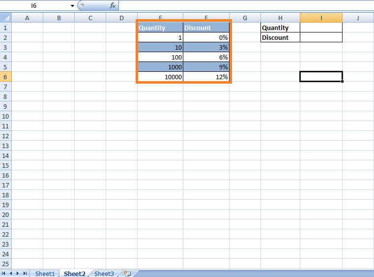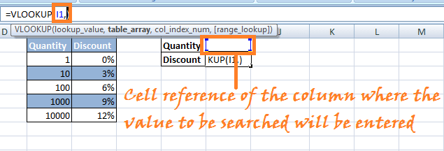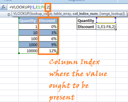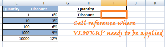 Now it is uncertain that the customer buys exactly hundreds or thousands of items. In this case, Discount will be applied as per the VLOOKUP's Approximate Matches. In other words, we do not want to limit them for finding matches to just the values present in the column that are 1, 10, 100, 1000, 10000. Here are the steps: