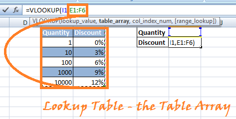 Step 4) Argument 2: Choose the lookup table or the table array in which you want VLOOKUP to search for the corresponding value.(In this case, choose the columns Quantity and Discount)
