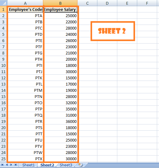 We will start our work on Sheet 2 as that sheet provides us with two arguments of the VLOOKUP function that is – Employee's Salary is listed in Sheet 2 which is to be searched by VLOOKUP and reference of the Column index is 2 (as per the lookup table).
