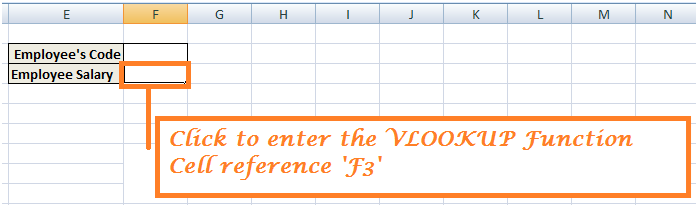 Step 2) Click on the cell where you want to apply the VLOOKUP function. In this case, it would be cell alongside Employee's Salary with cell reference 'F3'.