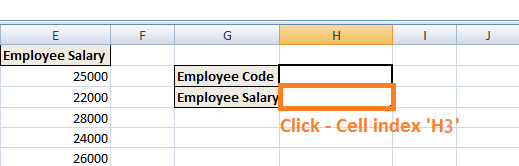 Step 1) we need to navigate to the cell where you want to view the Salary of the particular Employee.- (in this instance, Click the cell with index 'H3')