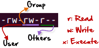Here, we have highlighted '-rw-rw-r--'and this weird looking code is the one that tells us about the Unix permissions given to the owner, user group and the world.
