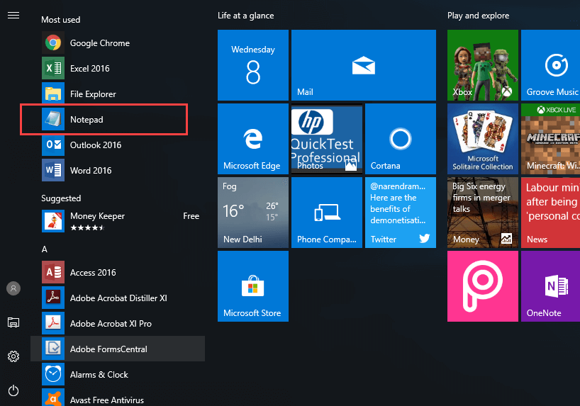 Step 1) Open Notepad from Start menu by selecting Programs > Accessories > Notepad.