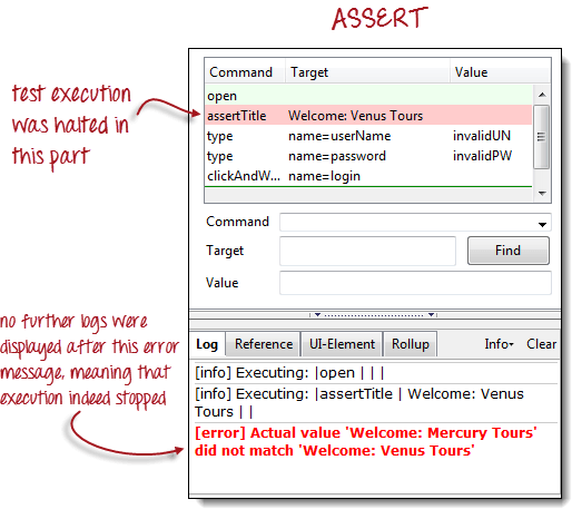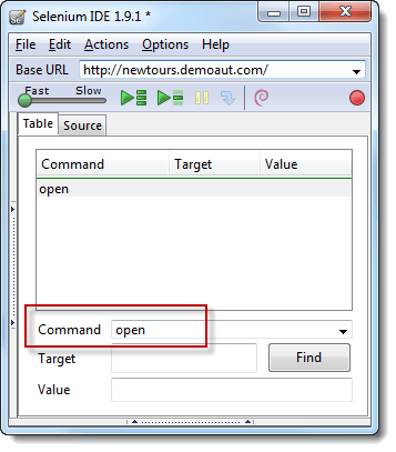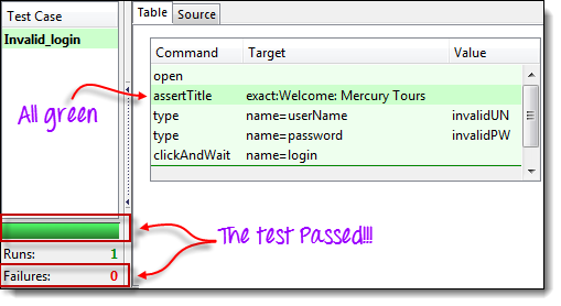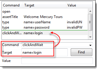 Let us use the Invalid_login test case that we created in the previous sections. Click on any command with a Target entry, say, the third command.