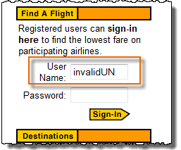 Step 3. Observe that the text box for username becomes populated with the text "invalidUN"