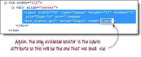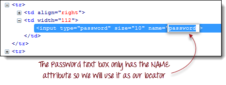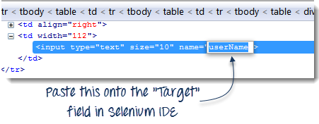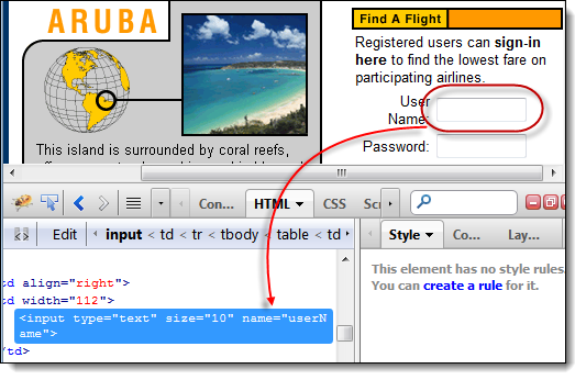 | Click on the User Name text box. Notice that Firebug automatically shows you the HTML code for that element. |
