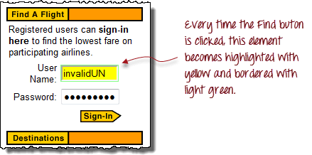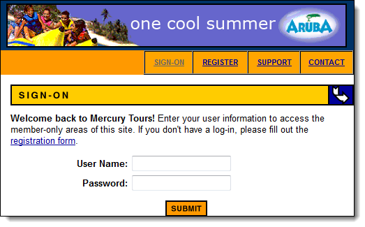 Click on the Find button. Notice that the User Name text box within the Mercury Tours page becomes highlighted for a second.