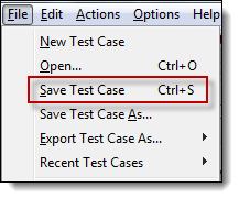 | Step 7 Now that we are done with our test script, we shall save it in a test case. In the File menu, select "Save Test Case". Alternatively, you can simply press Ctrl+S. | |