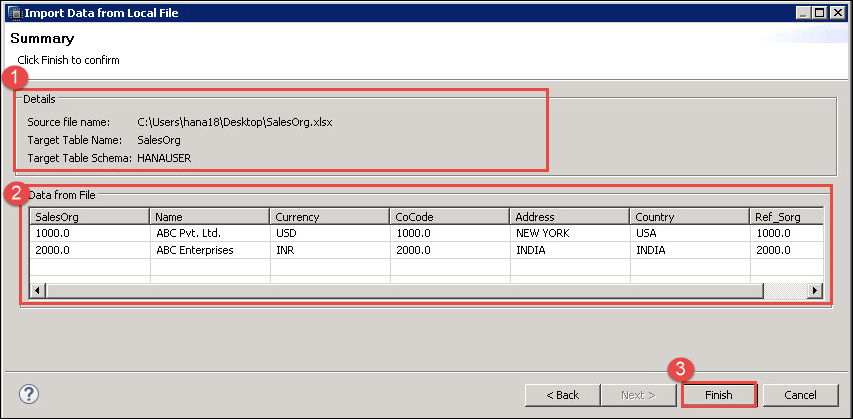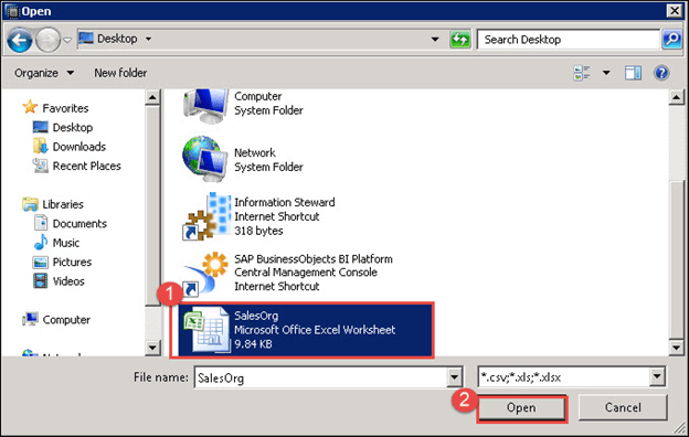 We are going to upload SalesOrg.xlsx file into SAP HANA, so we have created a file SalesOrg.xlsx in the local system.