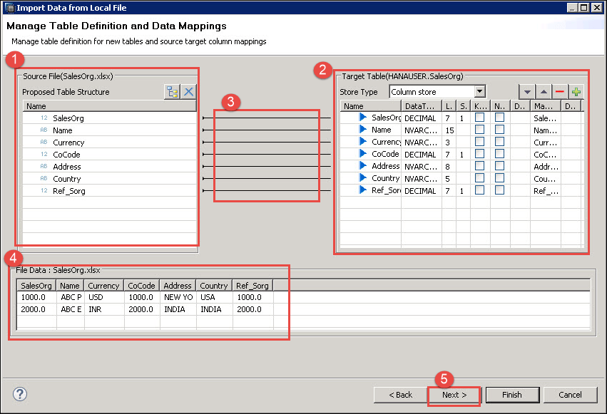 Mapping of Source to Target – We will map here Source File column to Target Table, and also, we can change target table definition.