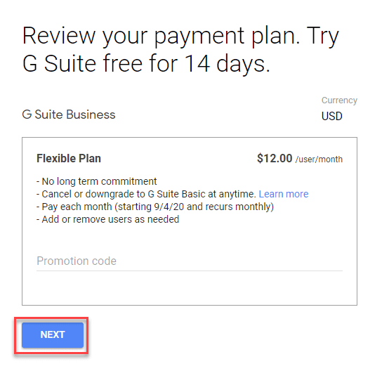 Step 9) Google Workspace allows you a fully-featured trial for 14 days.