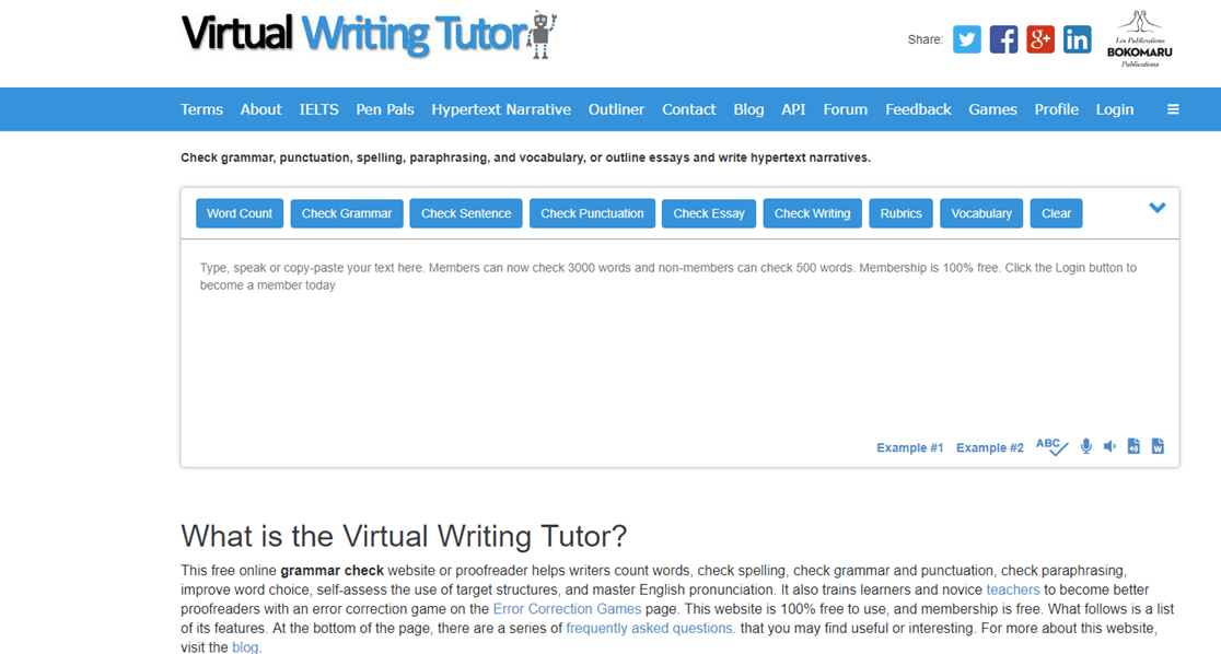 It is another important Grammarly check tool. The tool is widely used by bloggers, writers, and other professionals. Virtual Writing Tutor uses spelling, grammar, punctuation, paraphrase, and vocabulary checkers. It also offers a word count feature which shows the number of words in an essay, article, or any other content.
