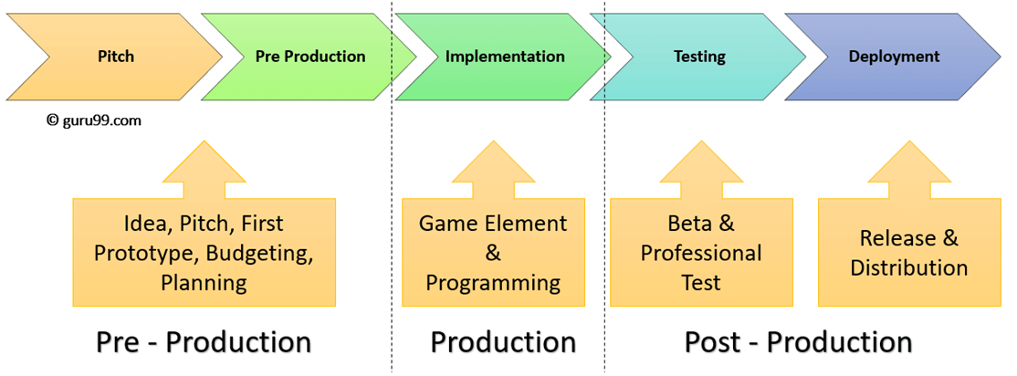 Pre- Production: During this stage Game idea, storyboard, features, requirement analysis, and documentation is done. This phase includes technical design document and feature specifications, game architecture, frame overlay, animation. Following items are considered