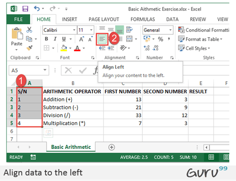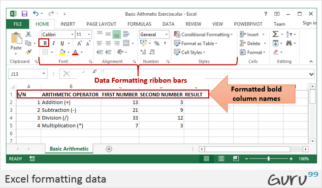 We all love beautiful things don't we? Formatting in Excel helps us achieve exactly that. We can make our spreadsheets more presentable. We will use the data in the arithmetic operations table. We will make the column names;