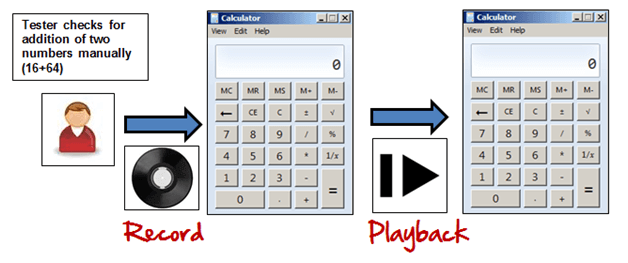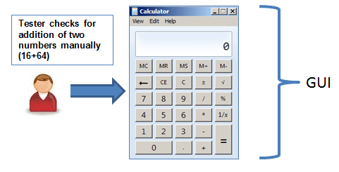 GUI testing can be done using automation tools. This is done in 2 parts. During Record, test steps are captured by the automation tool. During playback, the recorded test steps are executed on the Application Under Test. Example of such tools - QTP.