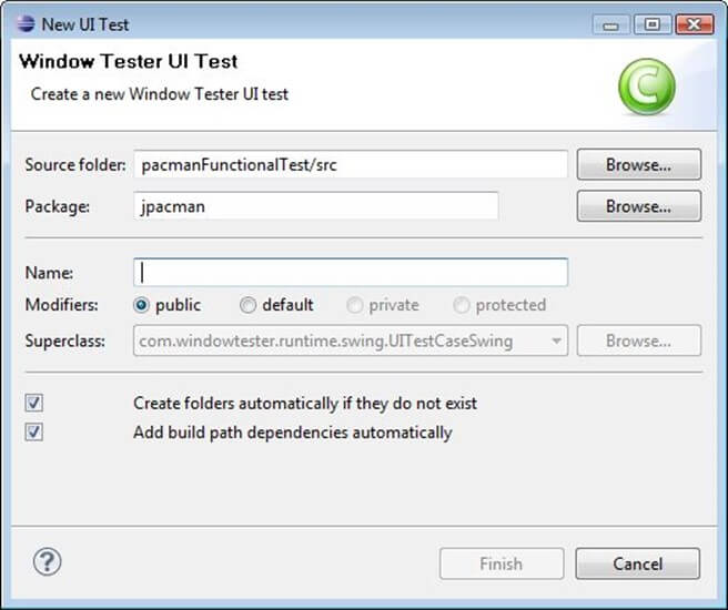 TC 09 – Verify that the label "Superclass" consists of a button with the label "Browse" on it which must be properly aligned.