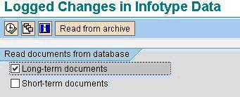 Long-term documents are used for revision purposes. Changes made to the infotype are stored in the database or can be archived. Long texts are stored until they are deleted. The archiving object is called PA_LDOC.