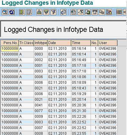 Hint:- Enter SAP user ID in the Changed By field to determine changes made by a particular user to an employee