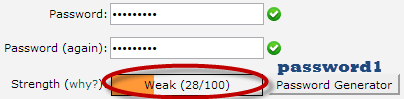 Note: the password used is password1 the strength is 28, and it’s still weak.