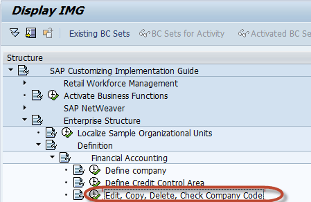 SAP Customizing Implementation Guide -> Enterprise Structure ->Definition->Financial Accounting->Edit, Copy, Delete, Check Company Code