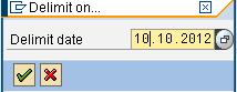 Step 4) In the next SAP pop up window ,enter the delimit date. Click the Check Mark Button.