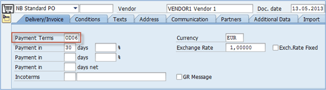 Purchase order item is now populated with information from purchase info record and material master, in combination with the vendor master data. This can be seen on the next few screens.
