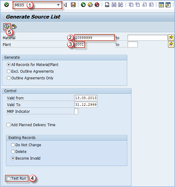 You can create a sourcelist in ME05 transaction. A source list is a list of possible sources for a material. If a source list requirement exists for the material, you must create a source list to proceed with the ordering.