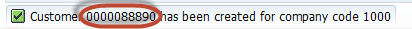 Step 9) Check the Status bar for the Creation of the new Customer Master