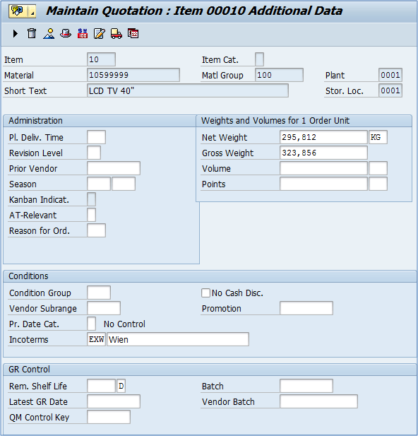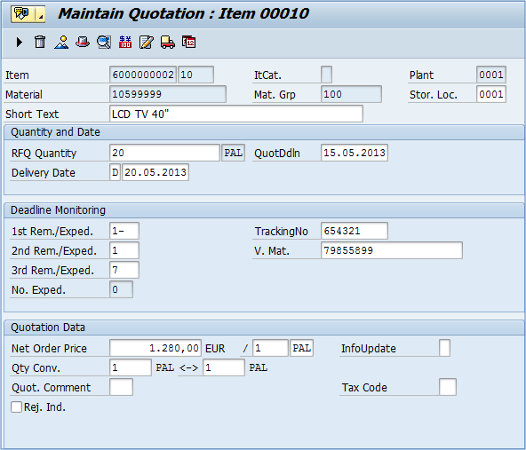 If you are done, you can save the data. If you need to change the quotation, you can do it by using the same t-code (ME47), or you can display it's data by using ME48.