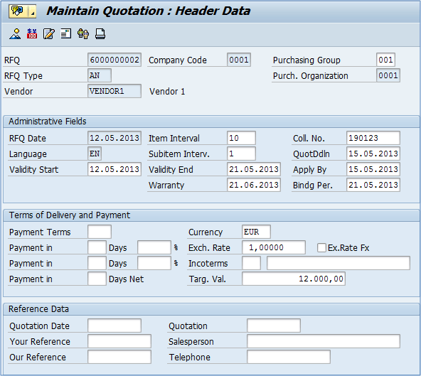You can repeat the process to create quotations for all of the RFQs. If certain vendor didn't answer your request for quotation, then you will not create a quotation for the vendor.