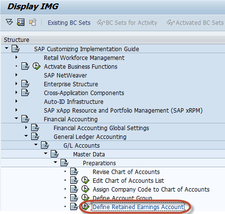 SAP Customizing - Implementation Guide- Financial Accounting - General Ledger Accounting - G/L Accounts - Master Data- Preparations- Define Retained Earnings Account