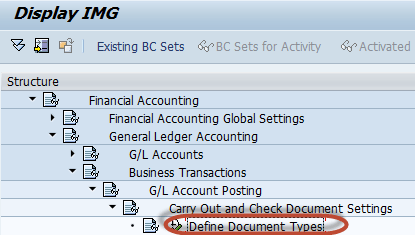 Financial Accounting -> General Ledger Accounting -> Business Transactions -> G/L Account Posting -> Carry out and Check Document Settings ->Define Document Types