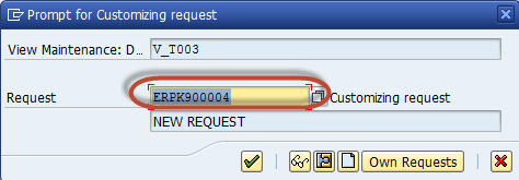 Step 7) In the next screen , Enter the Customizing request number to create the new G/L Document Type