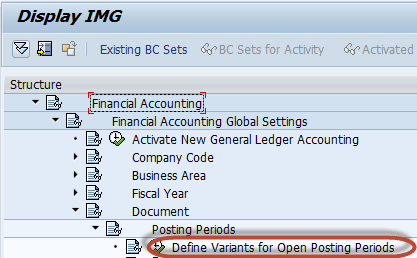 SAP Customizing Implementation Guide -> Financial Accounting -> Financial Accounting Global Settings->Document -> Posting Periods -> Define Variants for Open Posting Periods