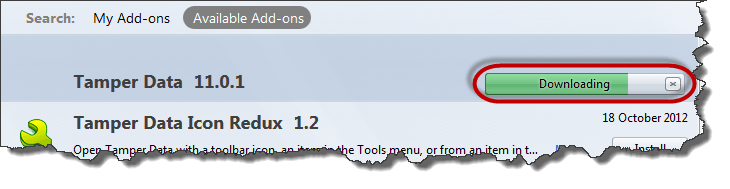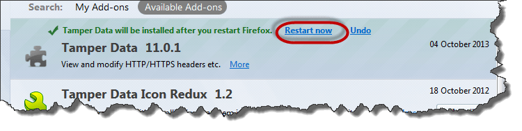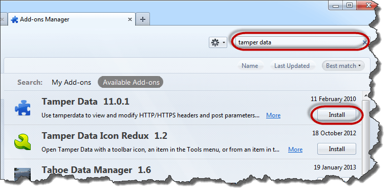 - Search for tamper data then click on install as shown above